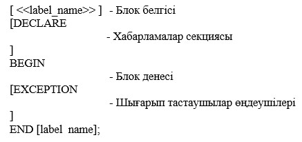 PL/SQL негізгі программалық бірлігі ретінде блок қолданылады, ол салынған блоктардан тұрады, кейде оларды ішкі блоктар деп те атайды.