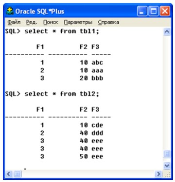tbl1 және tbl2 кестелері SELECT операторымен бейнеленетін жолдарға ие болсын 3.2 суретіндегі: