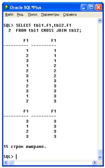 SELECT tbl1.f1, tbl2.f1 FROM tbl1 CROSS JOIN tbl2;