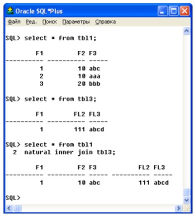 Көрсетілген предикат бойынша табиғи бірігу ON жазбасының көмегімен орындалады. Нәтижелік жиынға берілген шартты қанағаттандыратын жолдар жазылады. Бұл біріктіру