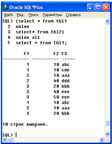Сурет 4.3. Нәтижелік жиынды реттеумен UNION- бірігуінің орындалуы.