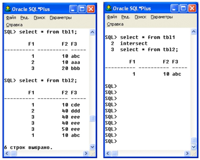 INTERSECT жазбасы әр біріктірілуші нәтижелік жиында бар жолдарды ғана таңдауға мүмкіндік береді. 4.5 суретте қиылысатын жиындар ретінде сұратулардың бірігу мысалы көрсетілген.