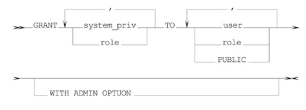 WITH ADMIN OPTION – жүйелік немесе объектілік өкілеттіктерді, рольді алған қолданушыға бұларды кейінгі басқа қолданушыға немесе рольдерге беруге рұқсат береді. Мұндай рұқсат рольдерді өзгертуге немесе алып тастауға мүмкіндік береді. (Берілген опция синтаксистік түрде SQL-92 стандартынан айырмашылығы бар.)