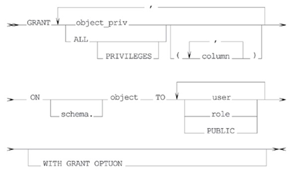 GRANT операторының синтаксисі қолданушыға жіберуді немесе рольдерге және жүйелік өкілеттігінің рольдеріне беруді орындайтын келесі схема ретінде берілуі мүмкін: