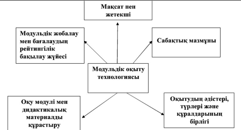 Сонымен, жоғарыдағы айтылғандарды жүйелейтін болсақ, модульдік оқыту техологиясы құрылымының мынадай нұмқасын көреміз.