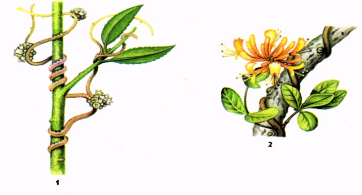 2-сурет – Лиана өсімдіктері: 1-жалаңаш шырмауық, 2-ырғай