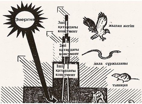 25-сурет – Экожүйедегі өнімділік пирамидасы және энергия ағыны