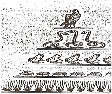 26-сурет – Өсімдік-шегіртке-бақа-жылан-қаршығадан құралған қоректік тізбек пирамадасы
