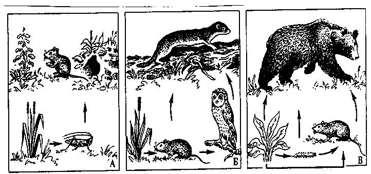 1-ші қоректік деңгей, яғни жасыл өсімдіктер – продуценттер, яғни шөпқоректі жануарлар – 1-ші реттік консументтерді құрайды. Ал шөпқоректі жануарлармен қоректенетін 1-ші реттік жыртқыш 3-ші қоректік деңгейді, яғни 2-ші реттік консументтер деңгейін; сол сияқты 2 реттік жыртқыштар 4-ші қоректік деңгейді, яғни 3-ші реттік консументтер деңгейін түзеді (26-сурет).