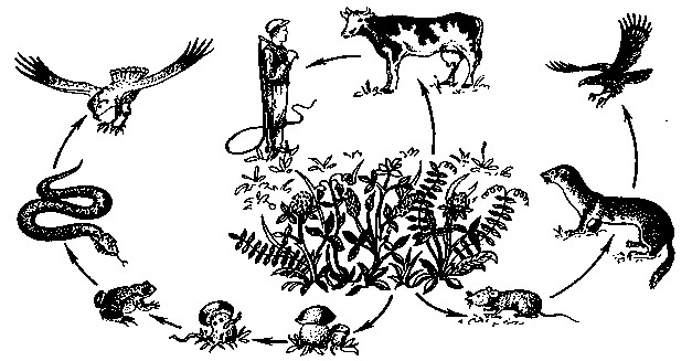 28-сурет – (Б. Небел бойынша) Өсімдік қоректі және өлексе қоректі консументтердің өзара байланысы