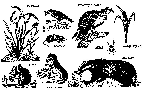 Мақсаты: қарапайым биоценоздағы қоректік торды анықтауды үйрену.
