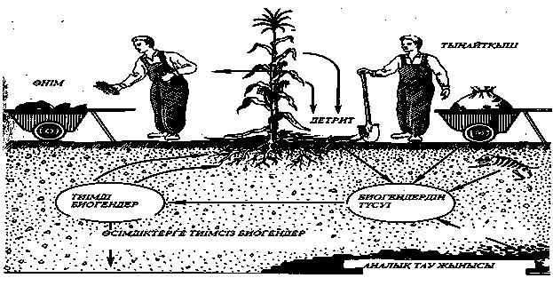 31-сурет – Деструкторлардың продуценттер мен консументтер арақатынасымен мәні