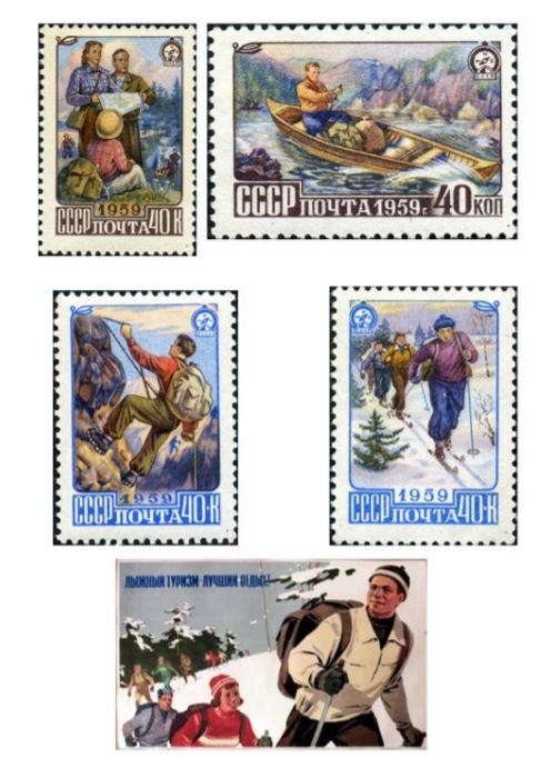 выпущена серия почтовых марок СССР, посвященных туризму: