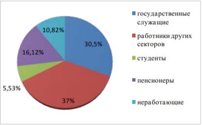 государственные служащие (30,5%), работники других секторов (37,0%), студенты