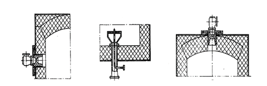 Fuel-burning devices in tube furnaces are placed on the walls, vaults, hearths horizontal, vertical and etc. Various embodiments arrangement of combustion devices are presented in Figure 2.8.