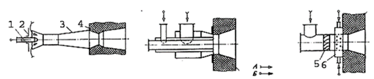 Figure 2.9 – Fuel injectors spray fuel oil Schemes: A – fuel; B – air; B – steam