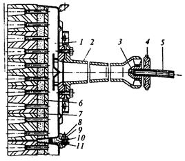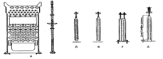 For a more uniform distribution of forces at the last grating is sometimes suspended on spring supports as shown in Figure 2.21 (e). When installing such grids between the lower end of the furnace hearth and left a gap equal to the lattice temperature elongation when heated from 0 to 500 °C. At start-up the furnace, when the grid is heated to 500º, and it lengthens the lower part there of reaches the stop, mounted on a hearth. With further increase of the temperature of the lattice extension goes up. This increases the height of the spring and simultaneously decreases the force exerted by the spring on the weight of the lattice, as part of its weight assumes lower support.
