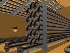 3 tubesheets convective coil 2 are fixed between the frames, providing stiffness in the transverse direction.