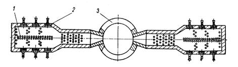 A variety of furnaces with bilateral irradiation screen is a vertical oven with gas burners, flameless combustion, made from special varieties of ceramics, catalyzing the combustion process. The furnace is a narrow chamber with a screen of bilateral irradiation, in the side walls of which there are a large number of ceramic nozzles (Figure 2.40, b). Such design of furnace makes it flexible, as it allows to adjust within broad limits thermal stresses both in height and length screens.