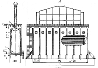 Figure 2.50 – Tubular single-chambered cylindrical with the annular chamber of convection furnace, with vertical pipes in chambers of radiation and convection