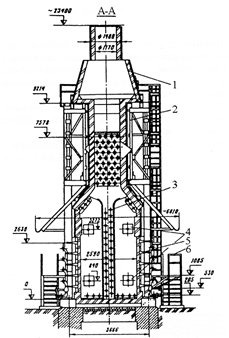 1 – a ladder platform; 2 – pipe coil; 3 – carcass; 4 – lining; 5 – grazing wall; 6 – burner