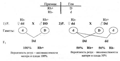 Группа крови Rh+ может быть гомозиготной (DD) и гетерозиготной (Dd), Rh только гомозиготной (dd) (рисунок 13).