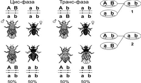 У дигетерозигот доминантные гены могут располагаться или в одной хромосоме (цис-фаза), или в разных (транс-фаза) (рисунок 20).