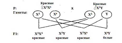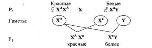 Рисунок 24 – Схема скрещивания гомозиготных рецессивных самок с гемизиготиым доминантным самцом