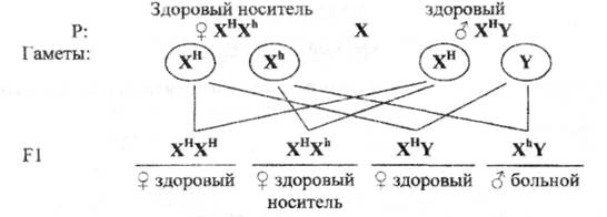 Рисунок 25 – Схема скрещивания гетерозиготных рецессивных самок с гемизиготным рецессивнымсамцом