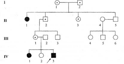 На рисунке 33 представлена родословная с Х-сцепленным рецессивным типом наследования гемофилии с ненарушенной репродукцией у больных