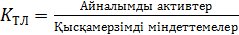 - ағымдағы (айналымды) активтердің айналымдылық коэффициенті (