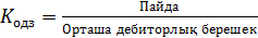 - дебиторлық берешектің айналымдылық коэффициенті (