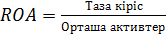 1) жиынтық активтердің рентабелділігі (ROA) – компания активтерінің кіріс тудыру қабілетін көрсетеді, яғни кәсіпорын активтерінің құнының бірлігіне қанша кіріс келетінің көрсетеді
