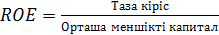 2) меншікті активтердің (меншікті капиталдың) рентабелділігі (ROE) – есептік кірістің көзқарасы бойынша акционерлердің инвестицияларына қайтарылымды көрсетеді