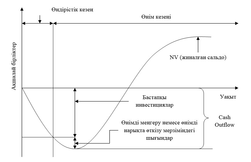 Максималды ақшалай қаражаттың жылысталуын есептеу. Максималды ақшалай қаражаттың жылысталуы (Cash Outflow), сонымен тағы қосымша қаржыландыруда мұқтаждылық (ҚҚ) деп аталады – бұл инвестициялық және операциялық қызметтен болған теріс жиналған сальдоның абсолютті мәнінің максималды мәні. Cash Outflow шамасы жобаның сырттан қаржыландырудың минималды көлемін көрсетеді, ол жобаның қаржылық жүзеге асырылуына қажетті. Сондықтан ҚҚ қауіп-қатер капиталы деп атайды.