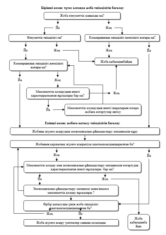 Егер әлеуметтік тиімділігі жеткілікті болса жобаның коммерциялық тиімділігін есептейді. Жобаның коммерциялық тиімділігі жеткіліксіз болса жобаны қолдаудың түрлері қарастырылады, олар жобаның коммерциялық тиімділігін қажетті деңгейге дейін арттырады.