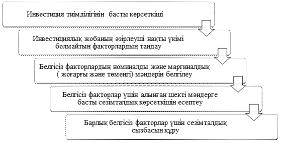Инвестициялық жобаның тәуекелін бағалауға арналған модельдеу моделінде не талданады, бұл не? Сезімталдықты талдау әдісі қандай? Оны жүзеге асыру кезектілігін сипаттаңыз.