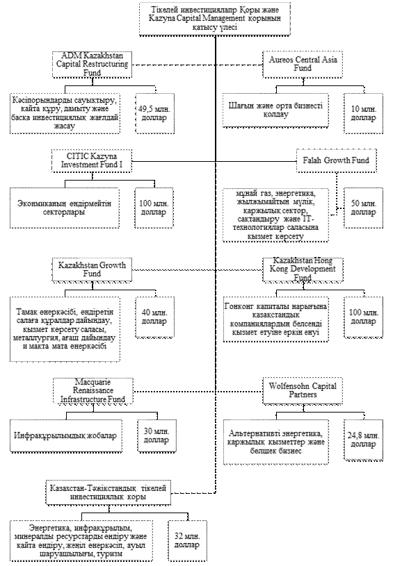 2007 жылдан бері ҚКМ қатысуымен тоғыз тікелей инвестициялық қор құрылды, соның ішінде жетеуі Қазақстанда инвестициялық қызметті жүзеге асыруда: