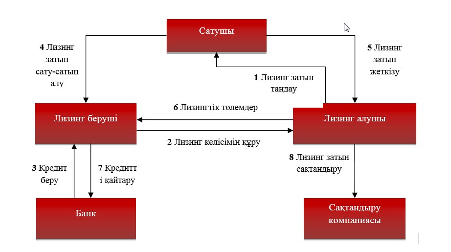 7.1-суретте Қазақстанда қолданылатын қаржылық лизингтің ұйымдастырылуы көрсетілген.