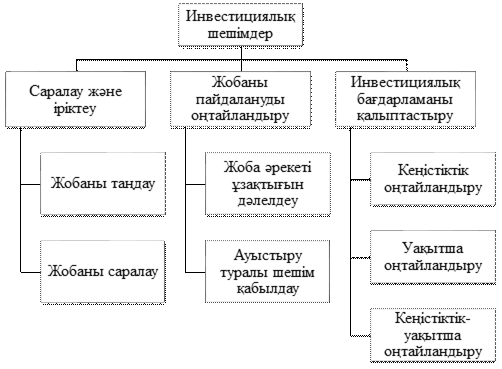 Инвестициялық шешімдер келесі топтарға бөлінеді: