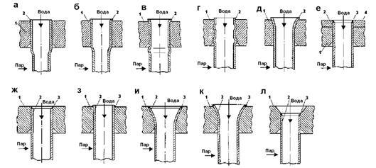 Рисунок 1.13 – Способы закрепления трубок в трубных досках