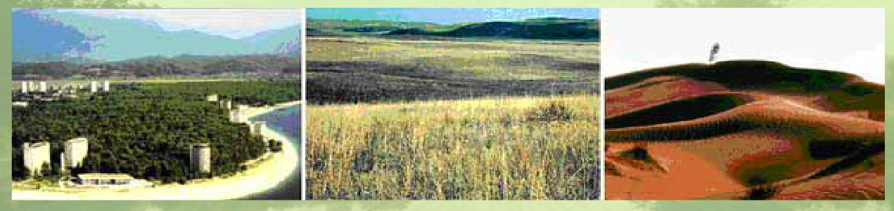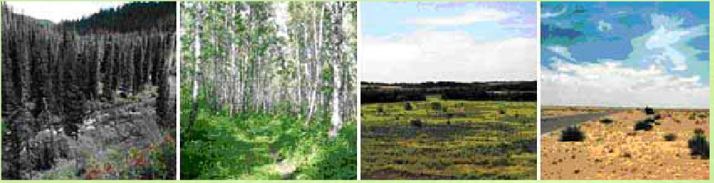 Природные зоны умеренных поясов. Слева направо: тайга (Саяны), широколиственный лес (Красноярский край), степь (Ставрополье), пустыня (Гоби)