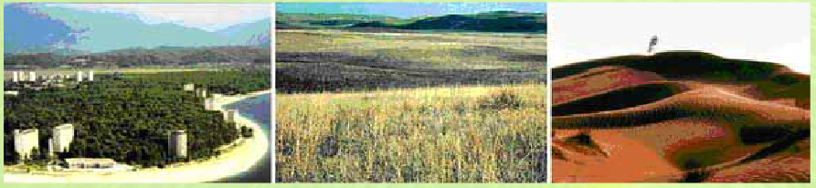Субтропические пояса. Слева направо: вечнозелёный лес (Абхазия), прерии (Небраска), пустыня (Каракумы)