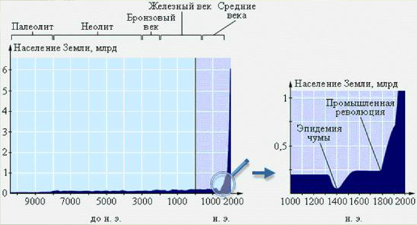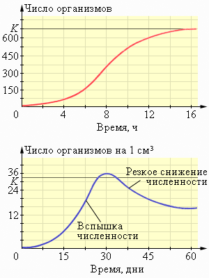 Если рождаемость в изолированной популяции превышает смертность, то популяция растёт. В начале роста кривая роста популяции – это экспонента. Однако рано или поздно питательные запасы в окружающей среде исчерпываются. В одних популяциях уменьшение количества питательных веществ начинает воздействовать на динамику роста загодя, и кривая роста приобретает S-образную форму. В других популяциях бесконтрольный рост численности заходит слишком далеко, после чего происходит катастрофический «обвал» численности, связанный с истощением ресурсов (J-образная форма). Рост популяций на первой (экспоненциальной) фазе можно приближённо описать дифференциальным уравнением