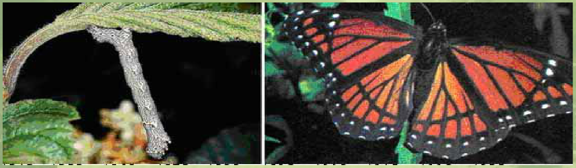 Справа – бабочка вице-король повторяет форму и окраску крыльев ядовитой бабочки-монарха