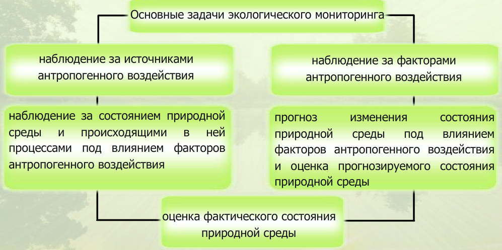 Экологический мониторинг — это совокупность мероприятий по наблюдению, прогнозированию и оценке состояния окружающей среды, проводимых с целью выявления антропогенной и естественной составляющих в его изменениях.