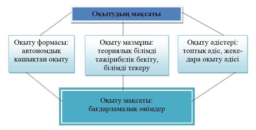 Әдістемелік жүйенің бөліктерін электрондық оқытуға сәйкес толығырақ қарастырсақ, оны мына сызбадан көруге болады.