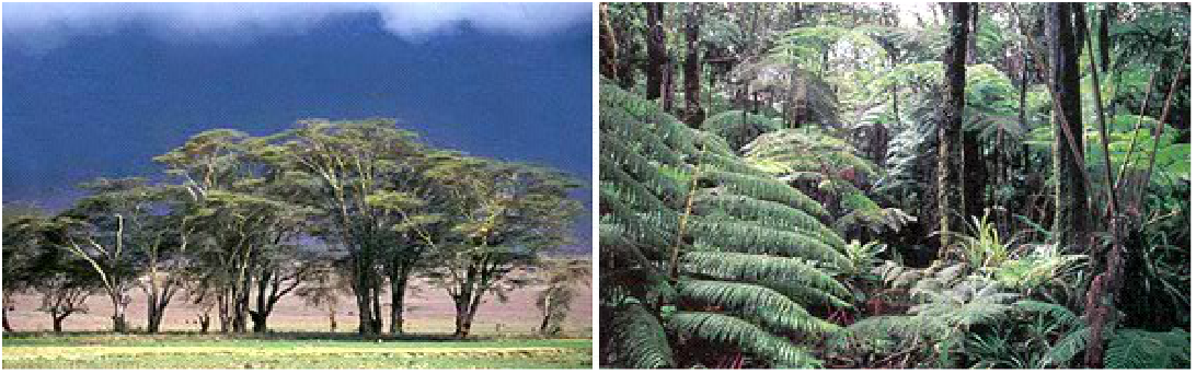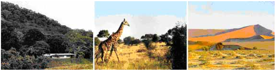 Тропикалық белдеу. Солдан оңға қарай: жапырақты орман (Коста-Рика), (Оңтүстік Африка), шөл (Намибия)