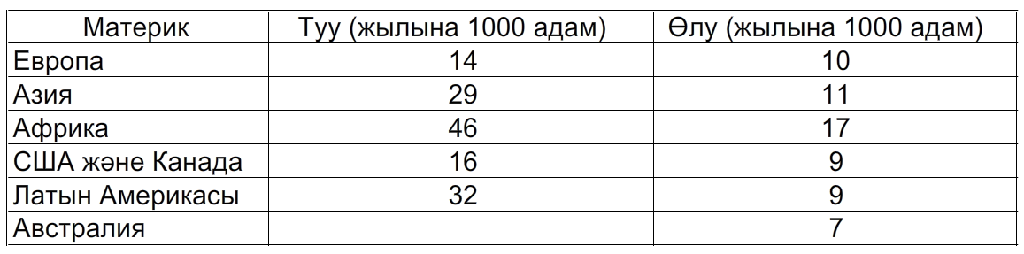 Әртүрлі аймақтардағы адамдардың тууы мен өлуі