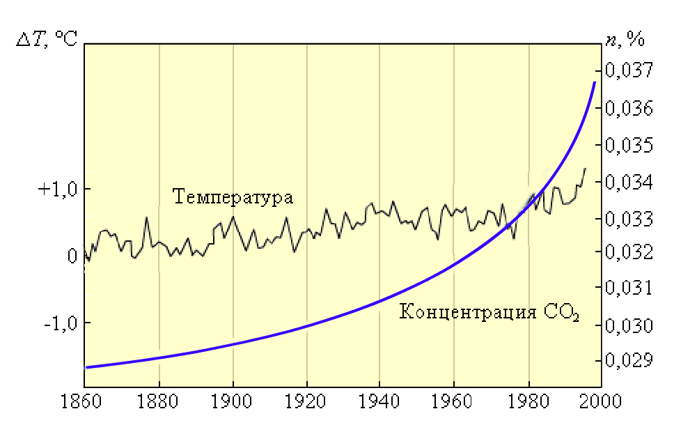 Жердің атмосфералық орташа жылдық температурасы және СО2 концентациясының динамикасы
